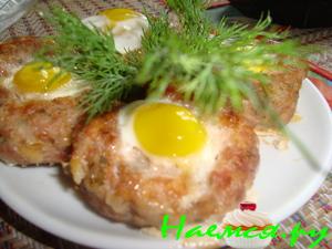 Сварить яйца вкрутую,очистить.Облепить каждое яйцо фаршем,сформировать котлетки.