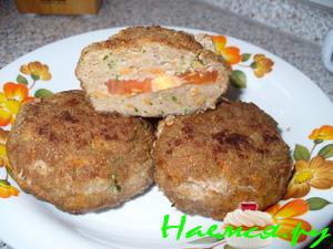 В каждый шарик в серединку положить сыр и аккуратно слепить котлетку