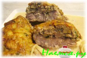 За основу был взят рецепт из какойто предачи(давно), но я его переделала под свой вкус. Сейчас осень, есть хорошие яблоки, есть мяско и всё осальное. Сочетание продуктов получается очень приятное.
