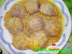 Тефтели выложить в кастрюльку, залить соусом и долить столько воды, что бы тефтели покрылись полностью.