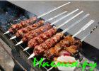 Нарезать мясо крупными кусками, залить водой и поставить кипеть. Снять пленку и выложить в мясо нарезанный лук(его должно быть достаточно много). Посолить (при желании можно добавить листики чабреца, придает очень пикантный вкус, но это на любителя) и довести до готовности (должен остаться густой сок), поперчить. Раздавить чеснок в несладкий йогурт и полить этим соусом мясо при подаче.