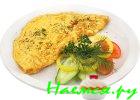 При подаче положите омлет на гарнир (припущенный рис или картофель фри) и оформите зеленью.