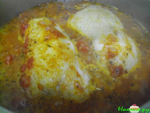 В сотейнике разогреть2/3 масла и обжарить курицу,разрезанную на порционные куски.