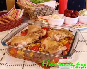 Ставим в разогретую до 180 С духовку минут на 30 или пока курица полностью пропечется т.е. выделяющийся из курицы сок будет прозрачный