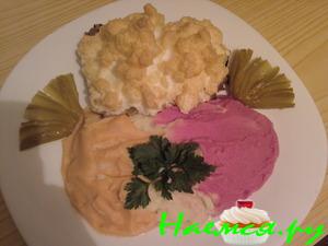 Чеснок пропустить через пресс и смешать с майонезом. Промазать медальоны с двух сторон, складывая друг на друга стопкой. Дать постоять 1 час.