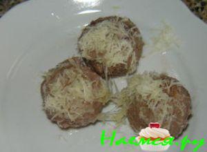 Сформировать небольшие шарики, сделать их слегка приплюснутыми и запанировать в муке.