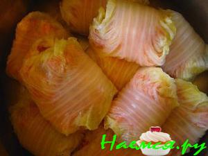 улаживаем слоями голубцы.заливаем водой и ставим на плиту.Вода не выше голубцов.Как закипят добавить пасту,сметану,посолить по вкусу. Варить на слабом огне до готовности.
