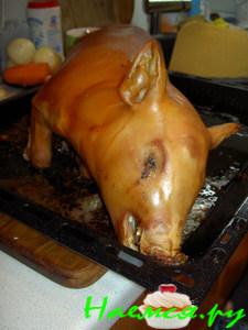 Сверху "поросенка" смазать взбитыми яйцами и поставить в духовку на 1-1,5 часа.