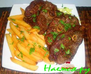 подавать с жареным чесноком и луком. Посыпать зеленью