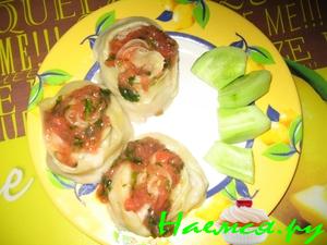 Тонко раскатать половину теста положить постепенно начинку и закручивать рулет, получиться 2 больших рулета или несколко маленьких. Можно их заморозить также как и манты.