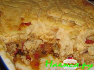 В другой сковороде приготовить овощи : лук порезать как вам нравится. Как только зазолотится, сразу добавить кабачок, через минуту-другую - болг.перец, через 2 минуты - баклажан ( почти в конце,иначе он превратится в кашу),еще через минуту помидор без кожуры и сразу чеснок(чеснок целиком, как только "отдаст" свой аромат, вынуть из овощей).