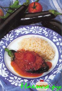 2. Когда баклажаны немного остынут,ложкой вынуть сердцевину.Измельчим сердцевину на мелко,добавим тёртую вареную картошку,сырые яйца,и орегано. Вымешиваем эту смесь и выкладываем в пустой баклажан.