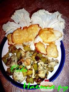 Мясо варенное, запеченное с яблоками в молочном соусе