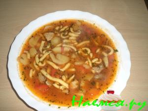 1.Гуляш обжаривать до полуготовности в растительном масле,затем посолить,поперчить и добавить базилик.