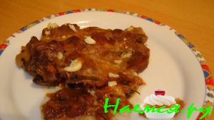 1. Нарезаем свинину небольшими кусочками и обжариваем до румяной корочки.