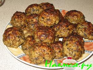 Из фарша сформировать шарики (ежики) и выложить их в форму для выпечки. Между ежиками накрошить сливочное масло и налить воды так, чтобы она скрывала примерно 1/3 ежика.