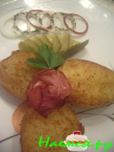 Готовый картофель горячим разломить и на каждую половинку положить кусочек масла и посолить