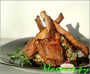 Корейку ягненка делим на порционные куски с косточкой,для этого разрезаем корейку вдоль кости до самого конца ,а затем ножом или поварскими ножницами разрезаем косточку.Далее маринуем мясо:свежий розмарин мелко рубим(если сухой ,желательно растолочь или измельчить)и тщательно натираем ягнятину,затем солим перчим ,поливаем вином и соевым соусом.После этого смазываем растительным маслом и оставляем на 5-10мин для мариновки.Если у вас электро- гриль нагреваем его до температуры 250 градусов,если мангал жарим на золе слегка потухшей.Время жарки определяете согласно своему вкусу,но не более 10мин иначе мясо потеряет всю влагу и станет жестким.Можно подавать с овощами жаренными на гриле или мангале или со свежими.