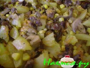 Добавляем картошку к мясу с овощами,перемешиваем,прикрываем крышкой и тушим до готовности картошки.