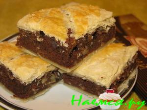 Один пласт теста раскатать в прямоугольник (не тонко),уложить на противень.