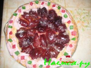 На тесто укладываем сливы,порезанные дольками(на 8 частей) и заливаем сливочной массой