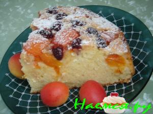 Вылить начинку в форму, сверху произвольно выкладываем абрикосы, посыпать крупно рубленным миндалём ( я использовала ядрышки абрикосовых косточек).