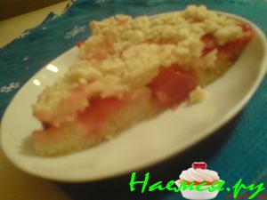 Пирог получается очень нежный,сливы дополняют вкус, а хрустящая с орехами верхушечка получается очень вкусной, хрумкает аппетитно:)