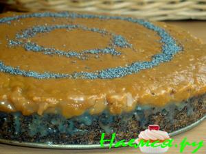 накрываем его вторым выпеченным коржом,смазываем вареньем и посыпаем измельченными жаренными орешками.
