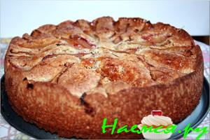 Вылаживаем тесто в подготовленную форму, выкладываем персики и сливы, посыпаем миндальными пластинками и в заранее нагретой духовке выпекаем 45-55 мин. при 180 гр.