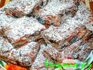 Изюм и курагу размочить в горячей воде (курагу порезать), обсушить, затем пересыпать мукой (можно сделать по-другому: изюм, курагу сбрызнуть водой или вином и в микроволновку на подогрев, быстро и качественно, ягодки набухают и остаются целыми).