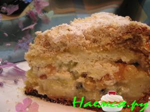 Начинить замоченным изюмом. Выложить на корж срезом вниз.