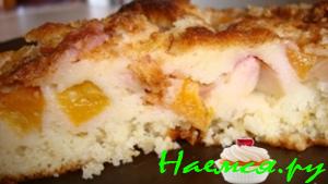 Разъемную форму смазать маслом, присыпать манкой. Вылить тесто в форму и посыпать орехами с сахаром.