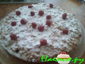 Вишню закрываем "покрывалом"- тестом, начиная с краев формы,это для того, чтобы вишня не сползла и осталась в середине.