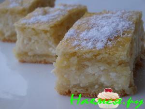 Раскатать тесто в форме, влить начинку, сверху украсить песочными полосочками из оставшегося теста.