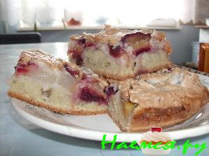 Вылить тесто в форму (половину или 2/3), затем выложить начинку (любую ягоду, яблоки, сливы и т.д.)и залить оставшимся тестом.