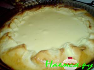 Когда тесто поднялось,разделить на две части(одна часть чуть больше другой).раскатать большую часть в пласт толщиной 1-2см.Выложить в форму с высокими бортами. Вложить начинку и прикрыть оставшимся тестом (предварительно так же раскатаного)и защепить по краям .Смазать Желтком.