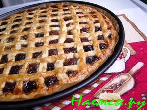 Смазать вареньем, посыпать ревень, посыпать корицей
