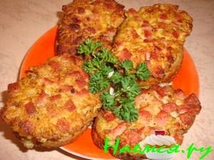 После выпечки присыпать смесью зелени(петрушка + кинза) и можно употреблять.