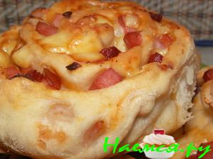 Раскатать тесто, смазать кетчупом далее положить нарезанную колбасу, перчик нарезаный кубиками и посыпать все сверху сыром!