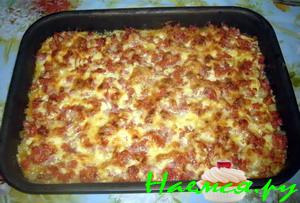 Поместить пиццу в духовку и выпекать 40-50 минут.