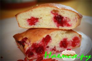 В другой емкости смешать муку и сахар,добавить соду,все смешать со сметанно-яичной смесью(смешивать только до соединения ингредиентов,чтобы тесто было комковатым и падало с ложки большими хлопьями).,затем добавить ягоды и осторожно перемешать.