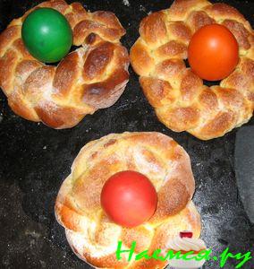 Когда "венец" остынет, в середину поместите пасхальные яйца.
