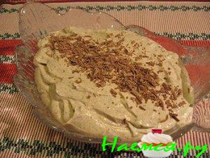 укрась шоколадной крошкой или сахарной пудрой или консервированными вишнями