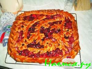Сверху равномерно раскладываем любые ягодки (замороженные обдать кипятком, или немного оттаять в дуршлаге).