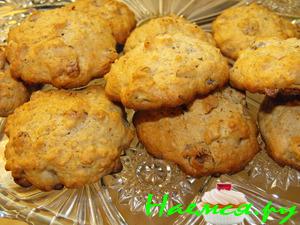 Взбить миксером размягченный маргарин с сахаром.Взбиваем пять минут,пока смесь не станет воздушной.Добавляем муку,разрыхлитель,ваниль,соль,яйца.Хорошенько взбиваем.Добавляем яблоки(без кожуры и сердцевины)нарезанные кубиками,овсяные хлопья,изюм(предварительно замочить,затем обсушить)нарубленные грецкие орехи(можно в ступке).Перемешиваем.