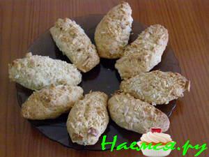 из 3 желтков, молка, 3 ст.л. сахара, маргарина и муки замесить густое тесто