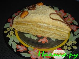Взбить яйца в пену с содой, растопленный мёд с сахаром слегка остудить. Продолжая взбивать яйца тонкой струйкой влить мёд. Добавить муку. Разделить на 3 части. Печь до румяного (10-15 минут). Духовку открывать осторожно, чтобы корж не опустился.