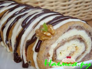 На полотенце,присыпанное сах пудрой,переворачиваем бисквит,снимаем бумагу,даем подостыть и выкладываем крем,распределяя ножом по всей поверхности. Скручиваем и в холодильник на час-другой