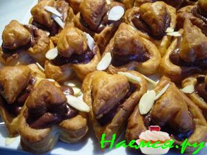 При помощи формочек для печенья вырезать из теста звезды, из половины вырезать при помощи меньшей формочки середину и уложить сверху на целые звезды, поставить в разогретую духовку на 15 мин. выпекаться. Когда звезды выпекутся, дать им остыть и аккуратно сломать поднявшуюся середину. В полученное углубление положить орешек и начинку. Начинка может быть разной.