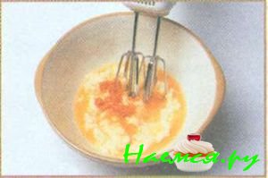 1. Миксером взбивайте масло и сахар, пока смесь не станет легкой и воздушной. Добавьте желтки, апельсиновый сок и цедру и продолжайте взбивать до однородности. Отставьте.